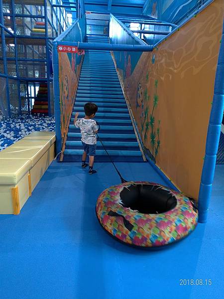 小朋友要自己拖著大輪胎上去,然後由工作人員幫忙推下滑坡~~