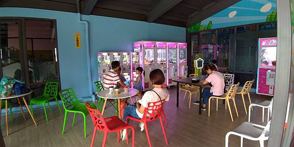 售票處另一邊是休息區,還有好多投幣式遊樂設施和抓娃娃機~~