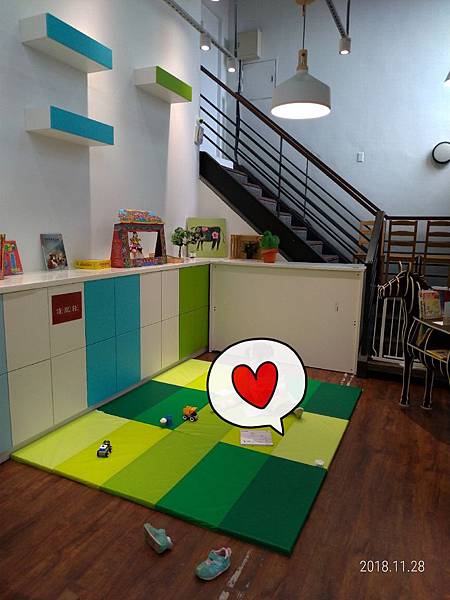 一旁的角落地上有鋪設遊戲墊,親子可以一起在遊戲墊上共享閱讀時光~
