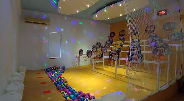 這關主要挑戰你的射藍「手感」,這裡有25個高低遠近不同的籃框,看你能否站在一個定點,隨時調整手腕柔軟度投進籃框得分唷~