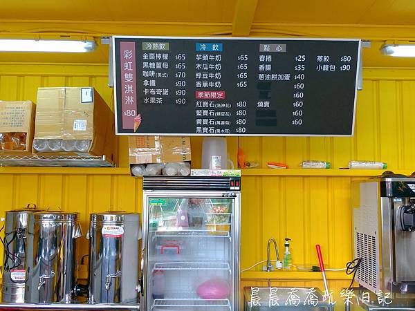 有販售咖啡、水果茶、鮮奶飲品例如「芋頭牛奶、木瓜牛奶、綠豆牛奶」等等,