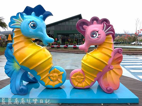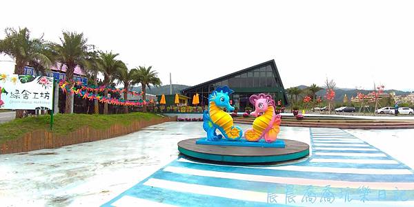 廣場中央的可愛海馬是造訪【綠舍工坊】必拍的景點之一唷~