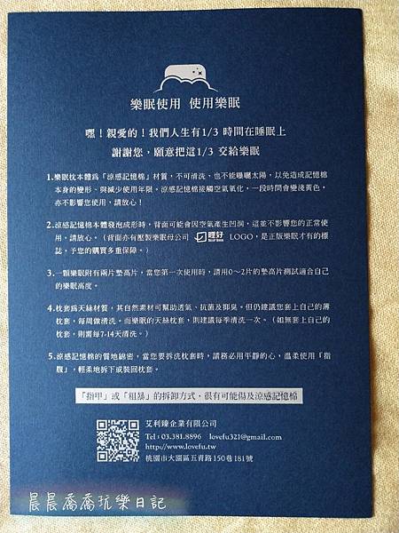 購買【樂眠枕】附上的簡介以及洗滌說明,