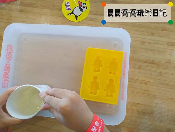 攪拌完成之後,就可以倒入積木人的模具裡面啦~
