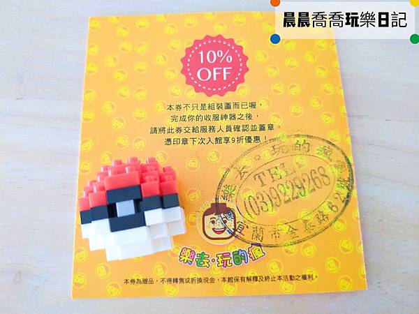 依照組裝圖完成寶可夢球之後,出示給工作人員看,即可在組裝圖背面蓋章,憑章可享下次入園門票 9 折優惠喔!