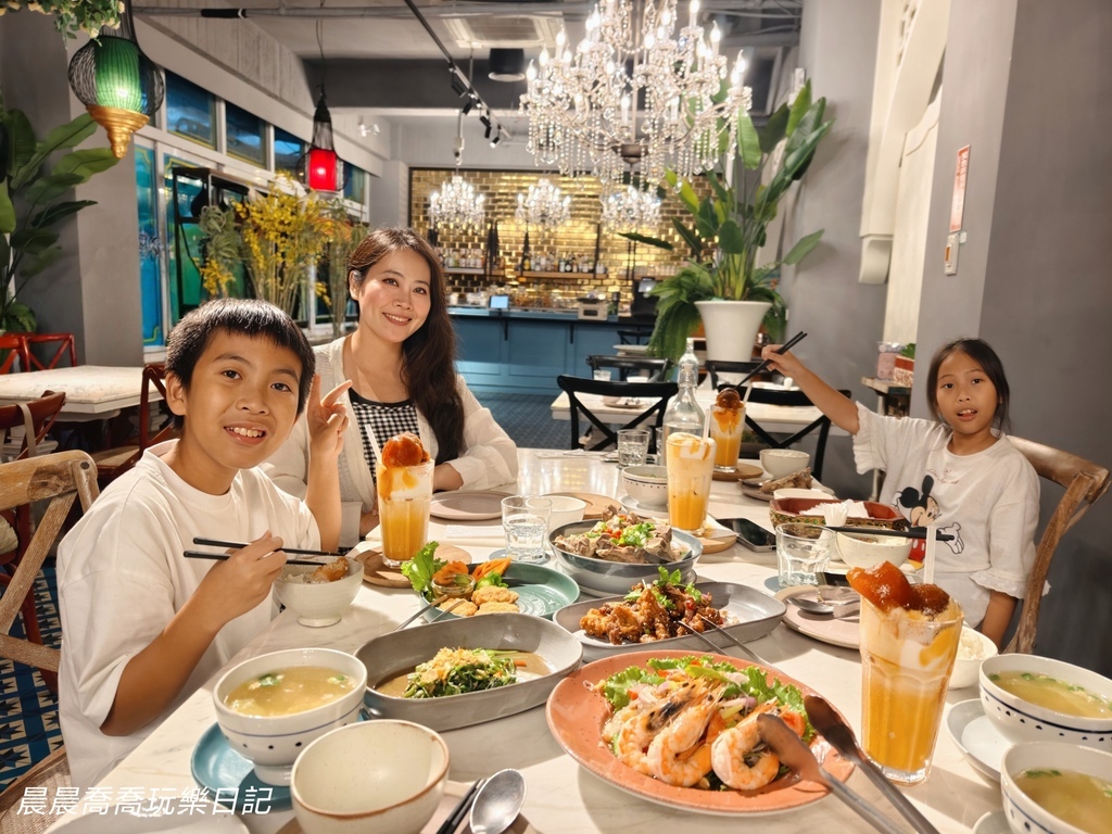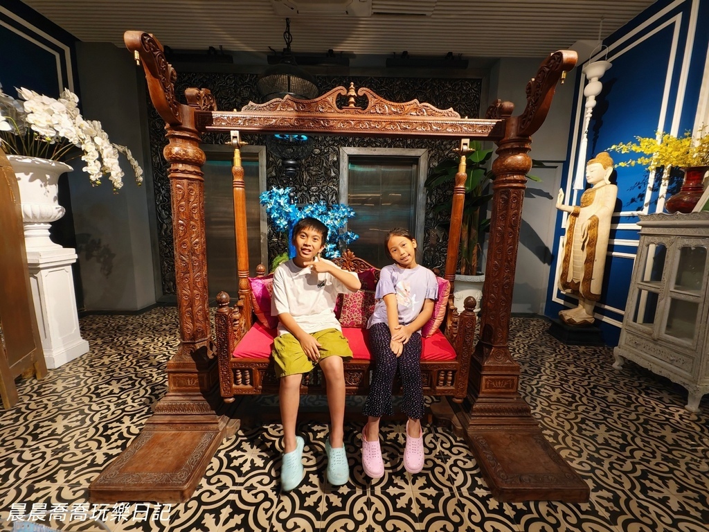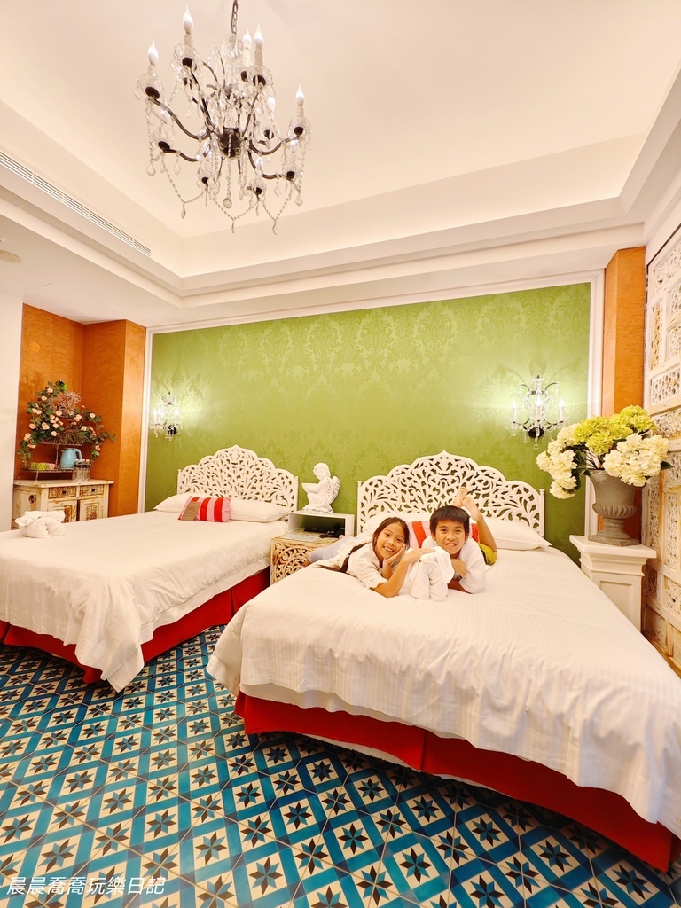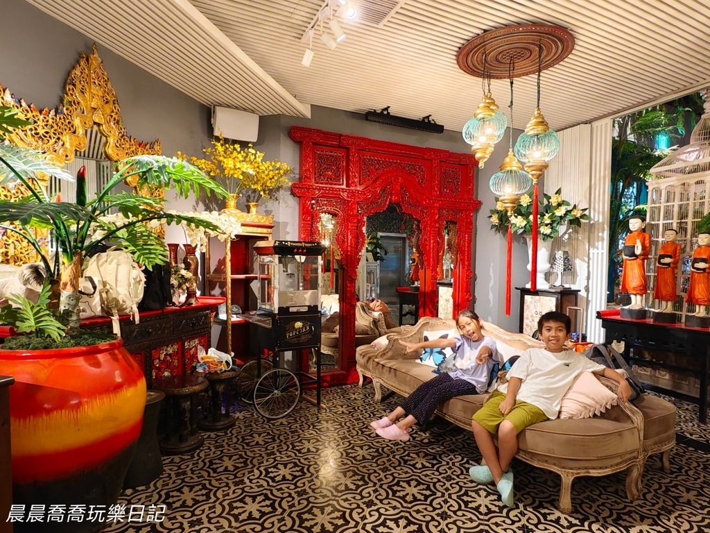 【安娜與國王酒店】榮獲2025台灣最美飯店大賞!由泰國設計師打造出融合泰國皇室風格和熱帶叢林,華麗精緻又充滿異國度假氛圍!【安娜與國王酒店】座落於嘉義百年市場,可以漫步在老街感受傳統市場風貌和品嚐美食,前往嘉義各知名景點也十分便利。我們這次入住芭達雅主題家庭房,以泰國芭達雅海灘風情為主題,繽紛色調搭配木質家具,整體氛圍充滿異國情調。早餐在飯店一樓的「泰悟餐酒館」享用泰式早午餐自助吧,晚餐推薦在泰晤餐酒館品嚐道地泰式料理,我們先在網路上購買「泰悟餐酒館優惠餐券(點我購買)」暹羅王室四人套餐只要1688超划算!(原價2500/5道料理+泰國香米飯+招牌泰奶+湯品),或是持晨晨喬喬開團住宿券用餐也可享九折優惠!