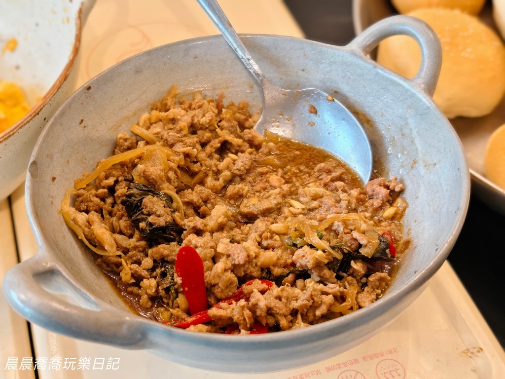晨晨喬喬最喜歡的泰式打拋諸漢堡,自己烤漢堡麵包,夾入泰式打拋豬和炒蛋就完成啦!