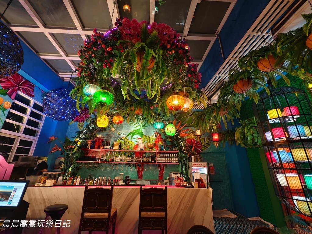 酒吧空間佈置得超級美!絢爛繽紛的色彩,各式花草植物點綴其中,迷幻的燈光,晚餐後在酒吧小酌聊天超chill!