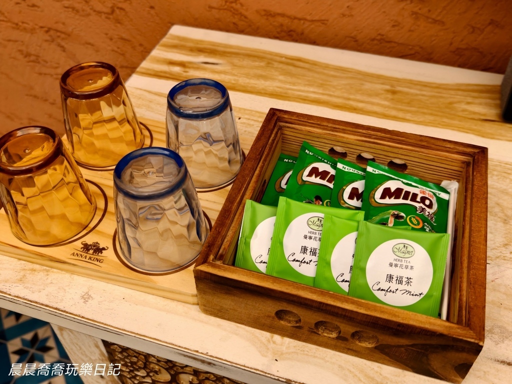 房間內附的茶包是康福茶,還有晨晨喬喬最喜歡的美祿~超符合泰式風格呀!