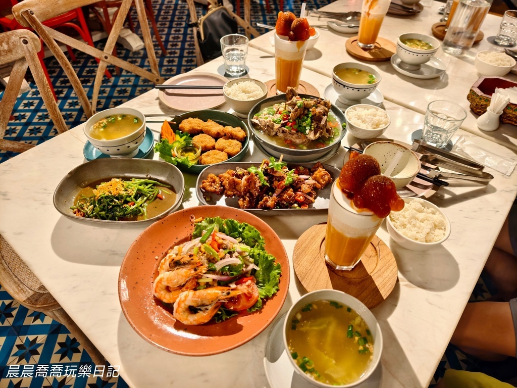 整體裝潢結合泰式風情與文青氣息,繽紛磁磚搭配木質桌椅,氛圍溫暖又有度假感。餐點更是令人驚艷,滿桌的泰式料理色香味俱全,像是酸辣開胃的海鮮沙拉、香酥蝦餅、打拋豬、清香空心菜與酸辣湯,每一道都味道濃郁、層次豐富。還有可愛的小熊泰式奶茶,甜中帶香,一喝就好幸福!整體份量充足,非常適合一家人或朋友聚餐。在泰悟餐廳用餐,彷彿一秒飛到泰國,既能享受異國料理的熱情,又能在舒適空間中輕鬆聊天,是安娜與國王飯店裡最讓人驚喜的美味亮點。