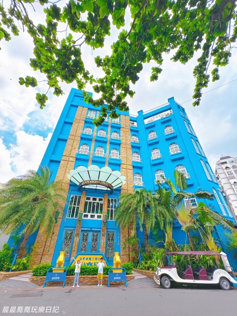 【安娜與國王酒店】位於嘉義市區,交通相當便利,附近有許多美食小吃,晚上不用開車也能輕鬆覓食。飯店外觀是超亮眼的寶藍色,矗立在歷史悠久的百年市場裡非常吸睛!一踏進大廳就能感受到異國氛圍,有繽紛華麗的泰式風格傢俱和藝術擺設,拍起照來超級好看!還有迷人濃郁的香氛,令人有置身泰國的錯覺感呢!