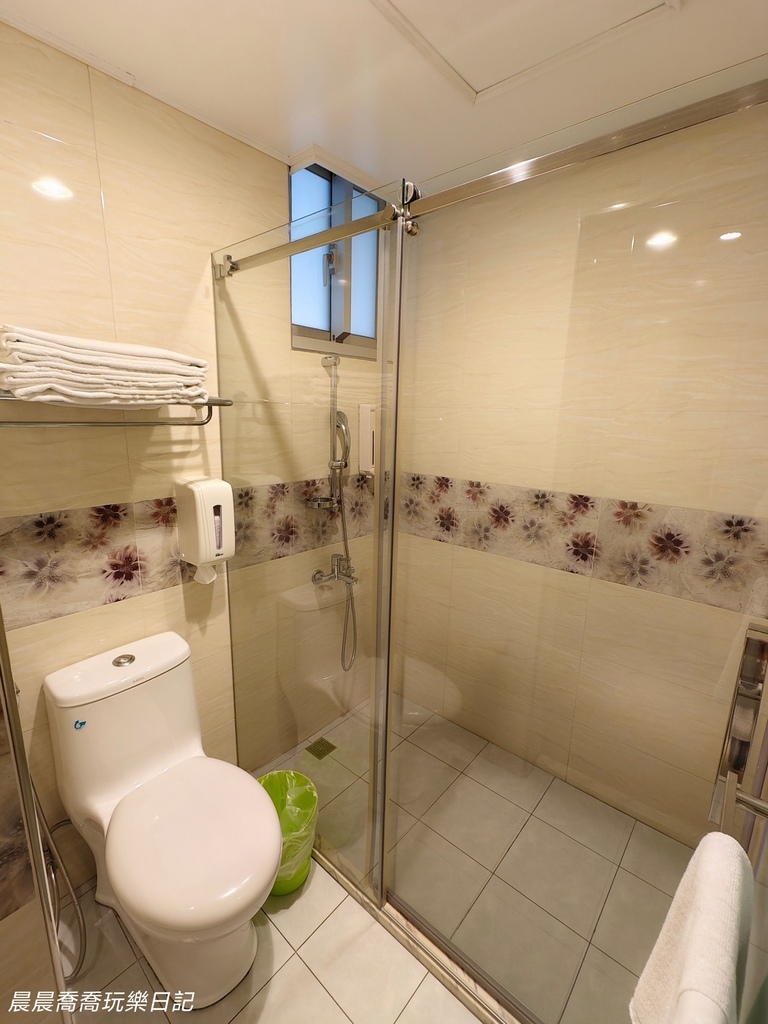 浴室採乾濕分離設計,提供浴巾和洗沐用品。