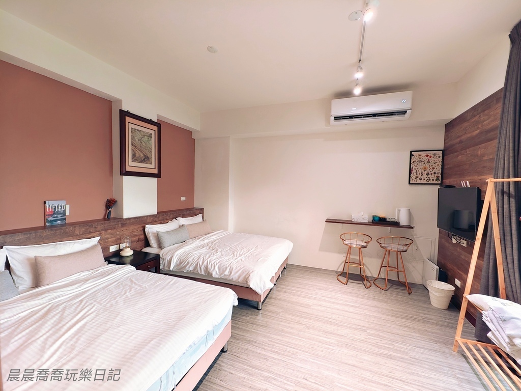 我們這次入住的是「四人家庭房」兩大床,平日入住只需要一張住宿券+$1200 還附早餐券,[ 點這裡買住宿券 ] 空間寬敞,採光又好,有陽台,簡單溫暖的風格住起來非常舒服。