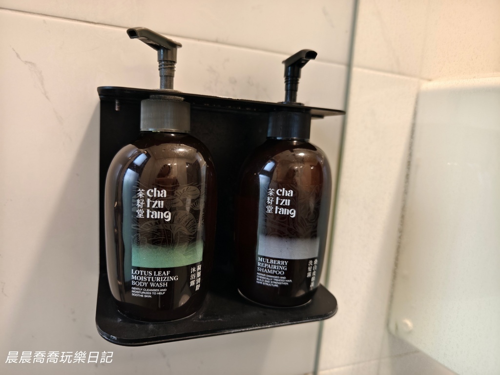衛浴空間乾淨明亮,洗沐用品是我很喜歡的台灣在地品牌「茶籽堂」!